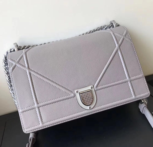 Dior Diorama Flap Bag In Pearl Grey Grained Calfskin
