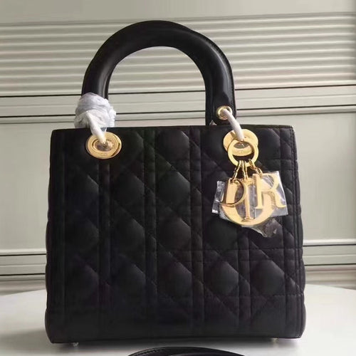 Dior Medium Lady D-Lite Bag In Black Embroidered Canvas