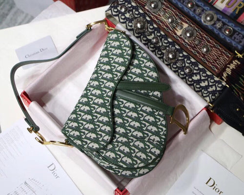 Dior Saddle Bag In Green Oblique Jacquard Canvas