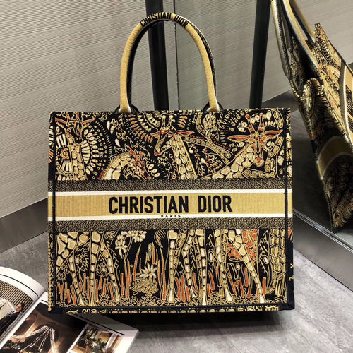 Dior Book Tote Bag In Yellow Animals Embroidered Canvas![]()  - Regular price