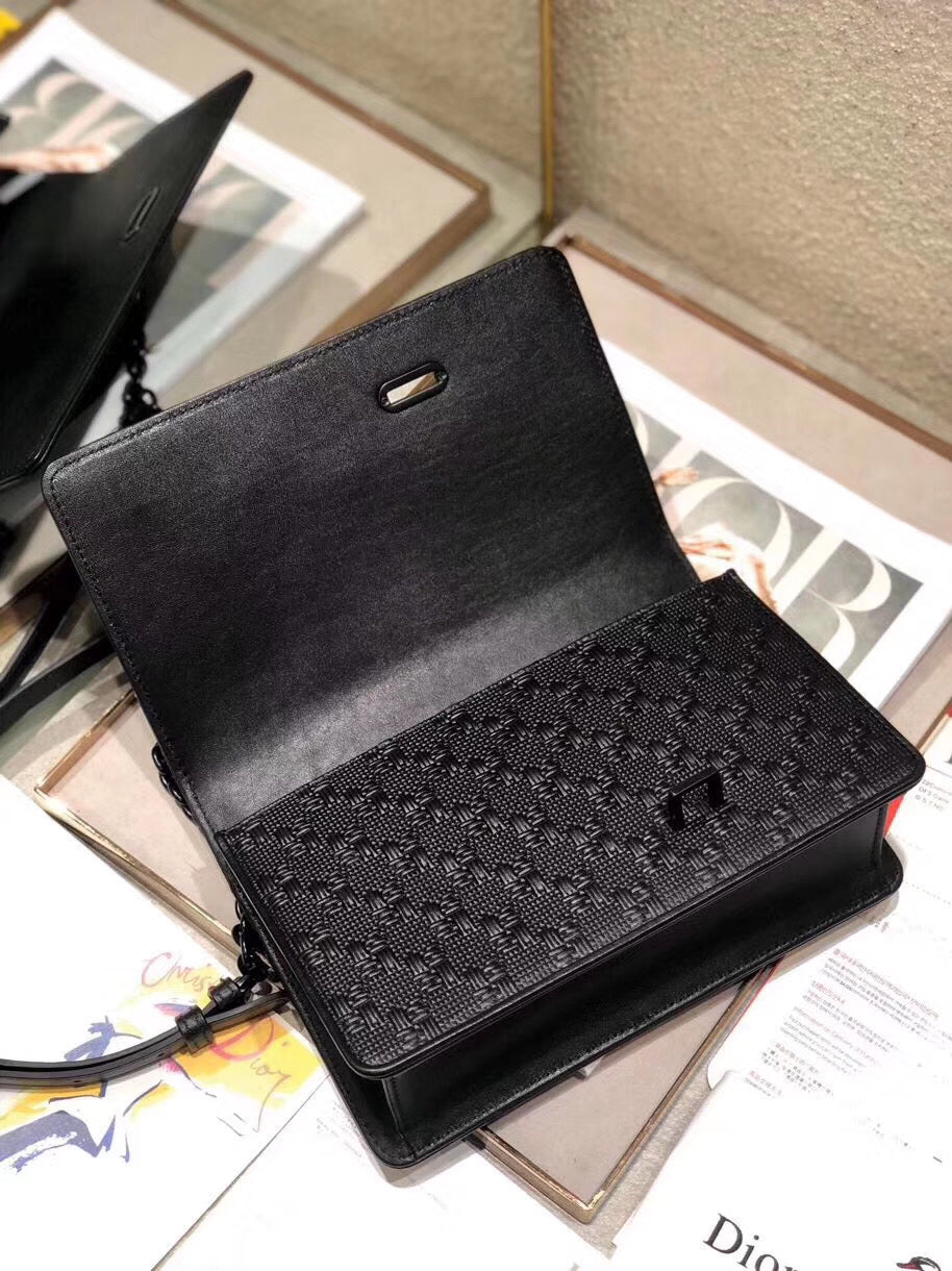 Dior 30 Montaigne Chain Bag In Black Braided Lambskin
