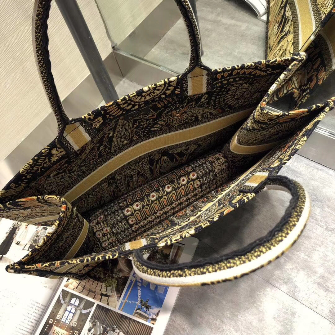 Dior Book Tote Bag In Yellow Animals Embroidered Canvas