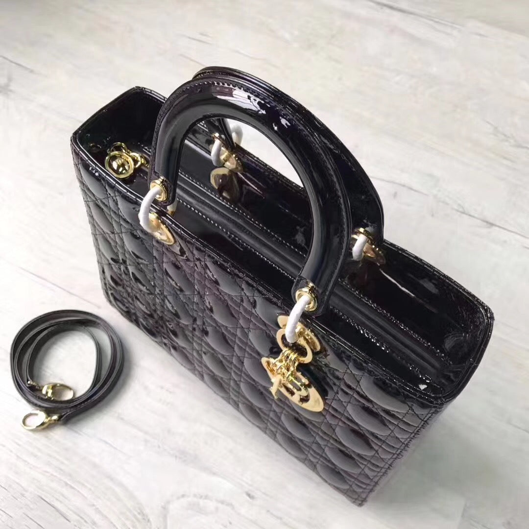 • Load image into Gallery viewer, Dior Large Lady Dior Bag In Black Patent Leather