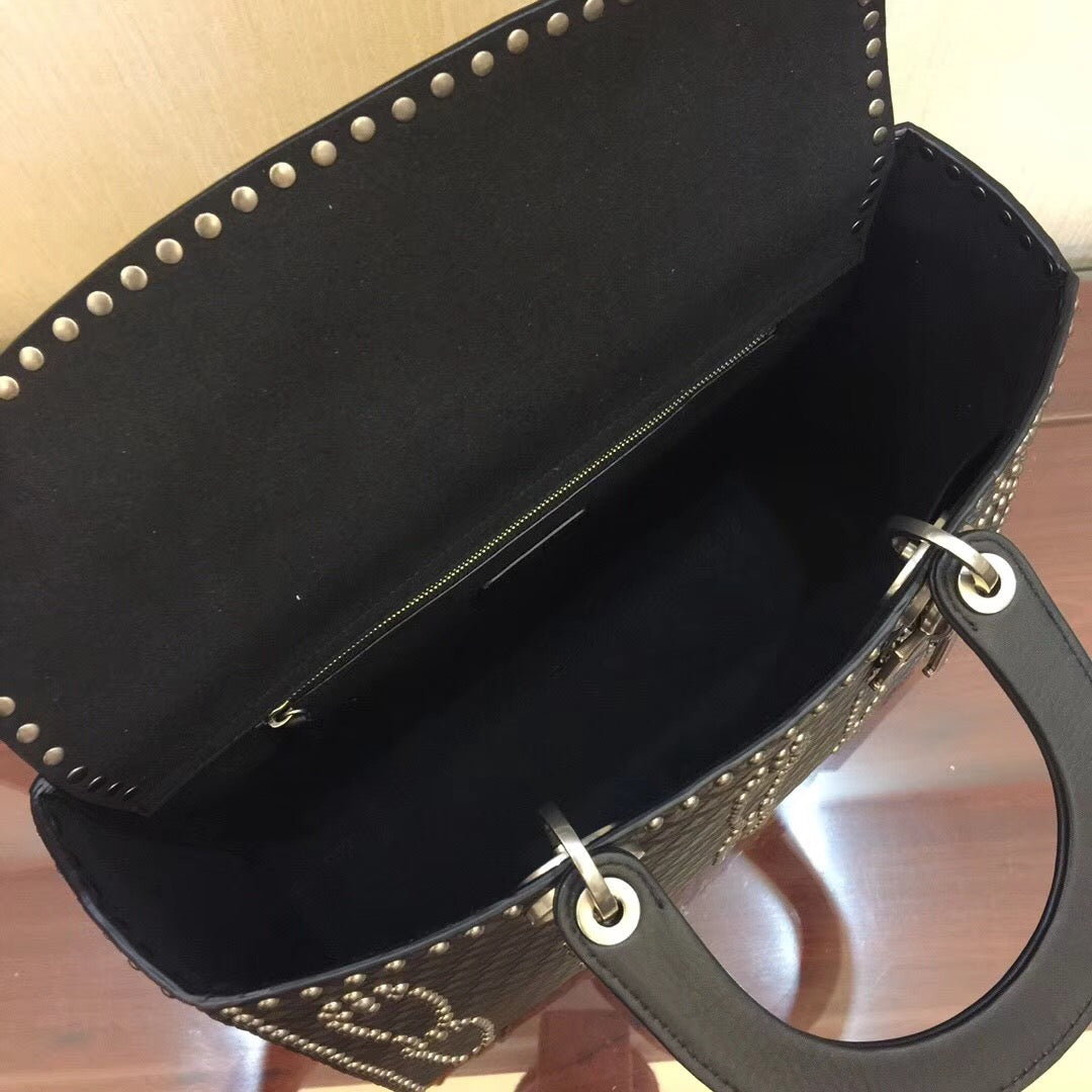Dior Large Lady Dior Bag In Black Studded Calfskin