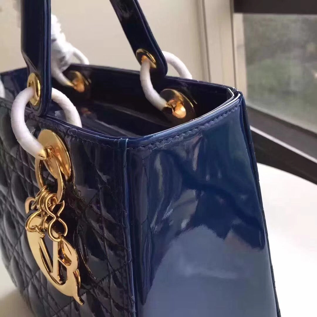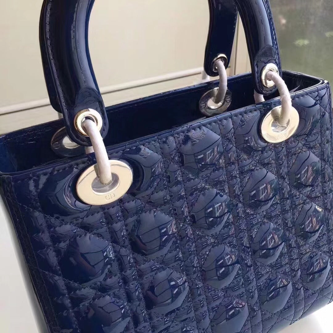 Dior Medium Lady Dior Bag In Blue Patent Leather