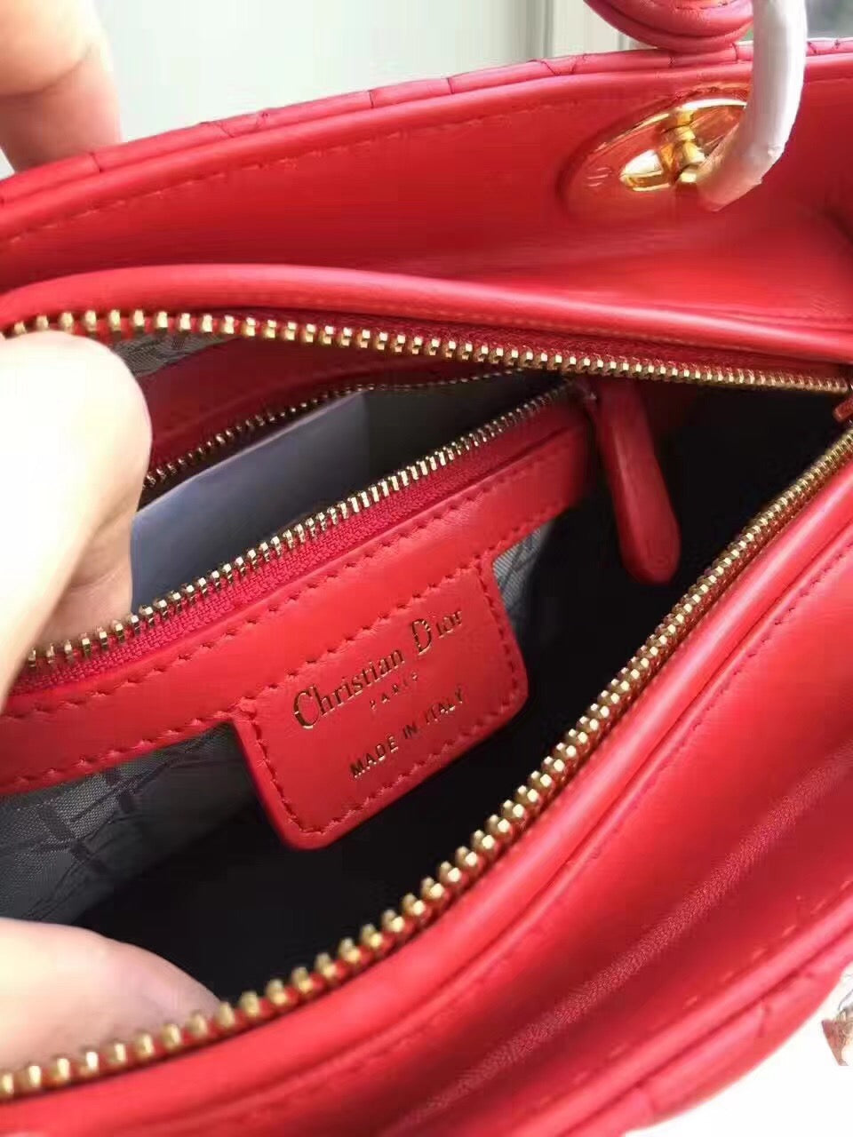 - Dior jacquard textile lining with one zip pocket