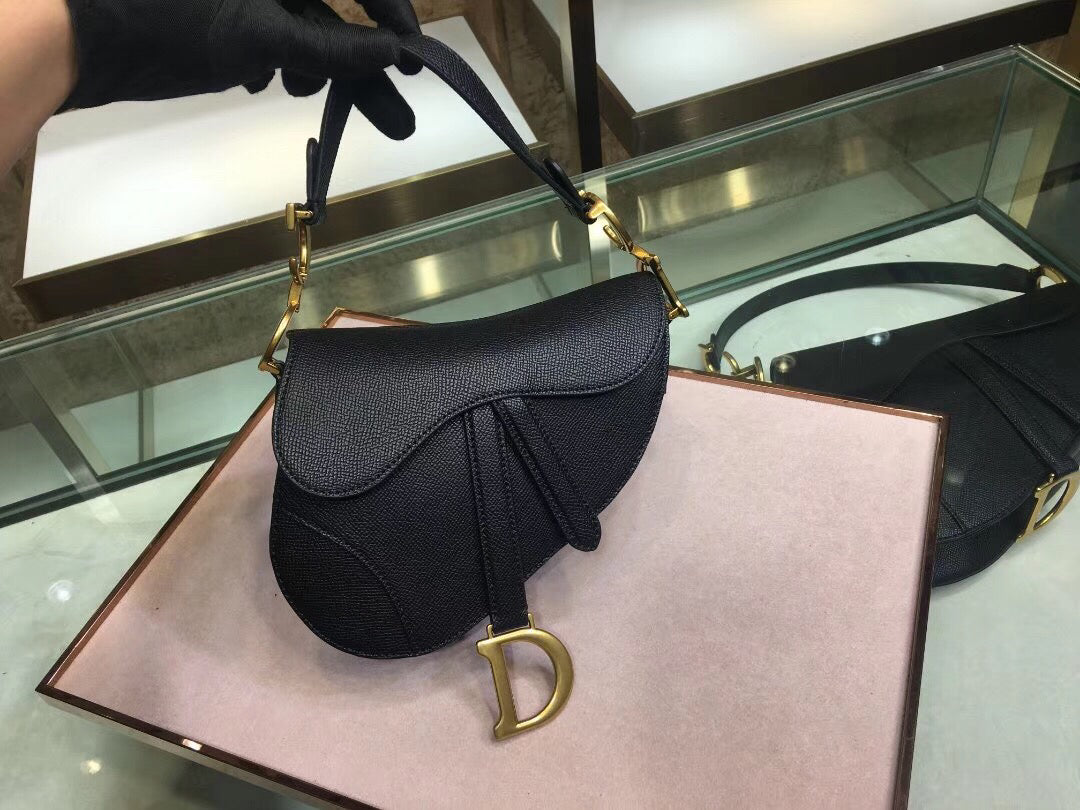 Dior Mini Saddle Bag In Black Grained Calfskin