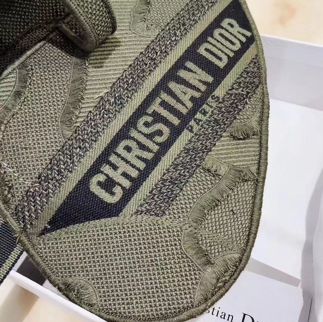 - Camouflage canvas - "D" accent at front - Removable canvas belt with "CD" closure - Antique gold finish metal - Can be worn as a belt, on shoulder, crossbody or clutch - Large interior compartment and 1 patch pocket