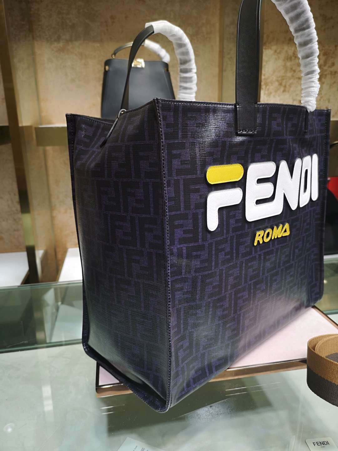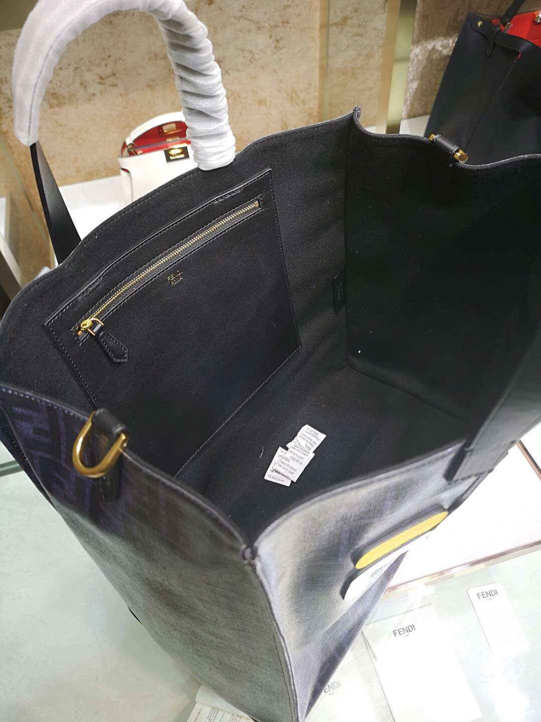 Fendi Black Glazed Fabric Shopper White Logo Bag