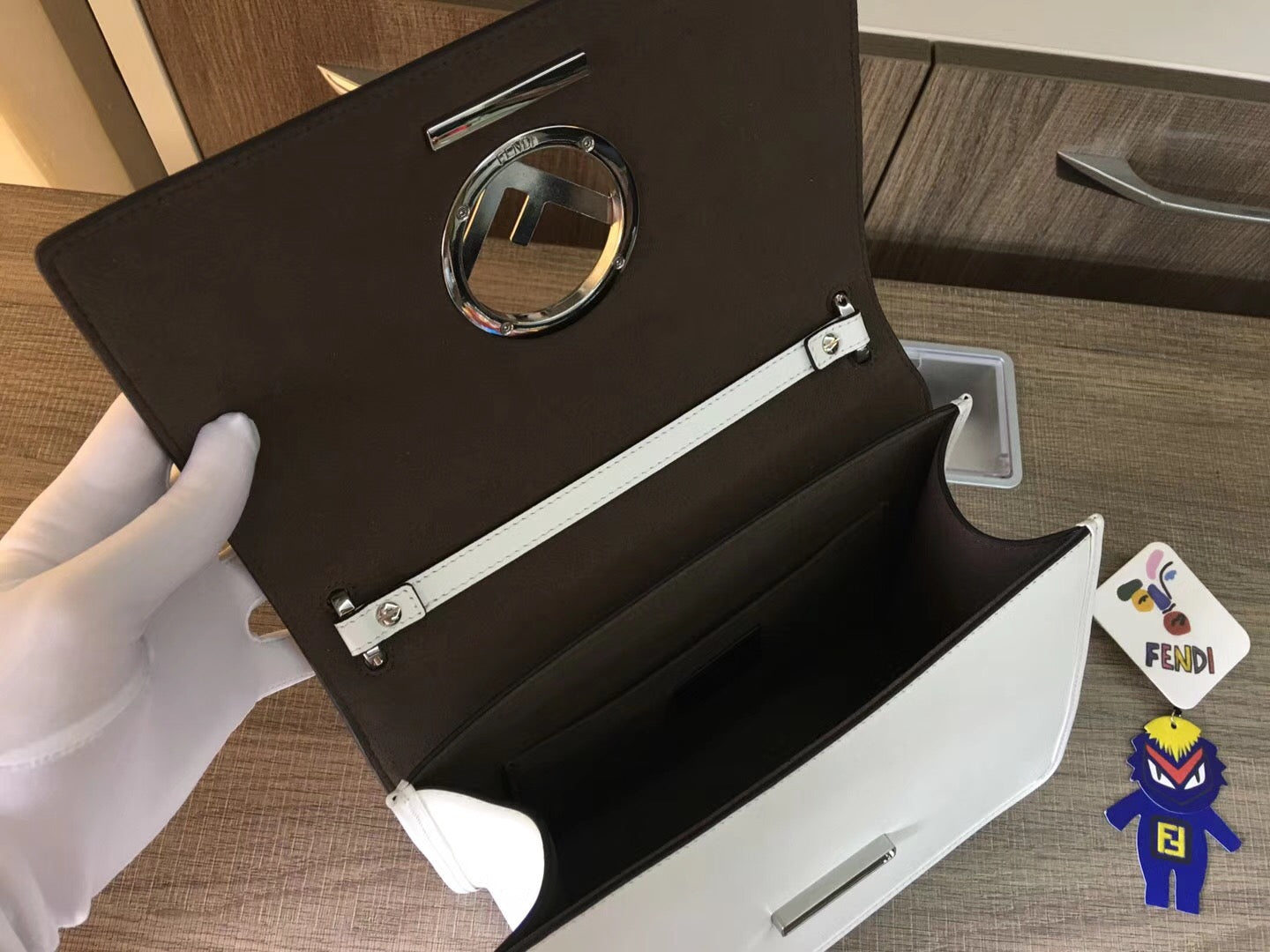 Fendi Kan I F Shoulder Bag In White Calfskin
