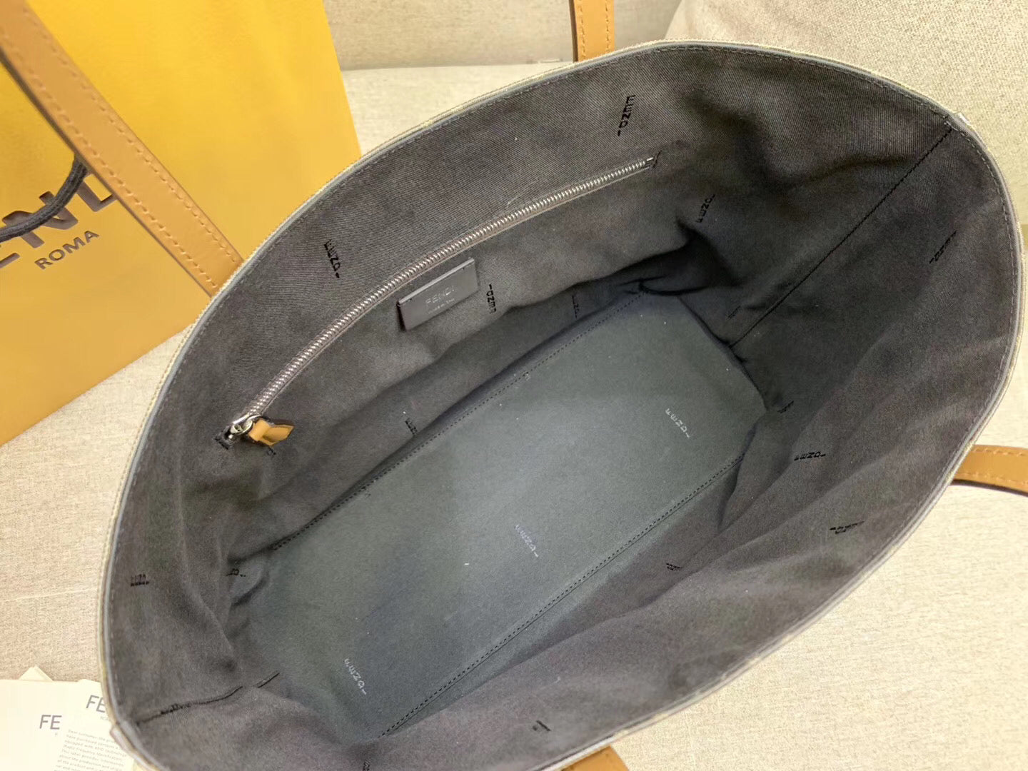 Fendi Logo Shopper Bag In Glazed Fabric With Tan Leather