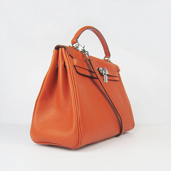 This Hermes Kelly 32cm Togo Leather handbag 6108 orange silver comes with:Hermes lock,keys,clochette,sleepers,care booklet,rain protection,tags and copy of the genuine receipt from an official Hermes store.