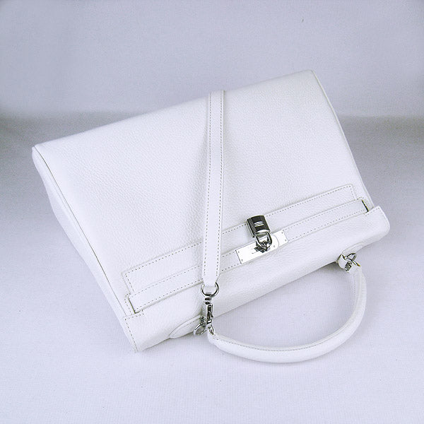 This Hermes Kelly 35cm Togo Leather handbag 6308 white/silver comes with:Hermes lock,keys,clochette,sleepers,care booklet,rain protection,tags and copy of the genuine receipt from an official Hermes store.