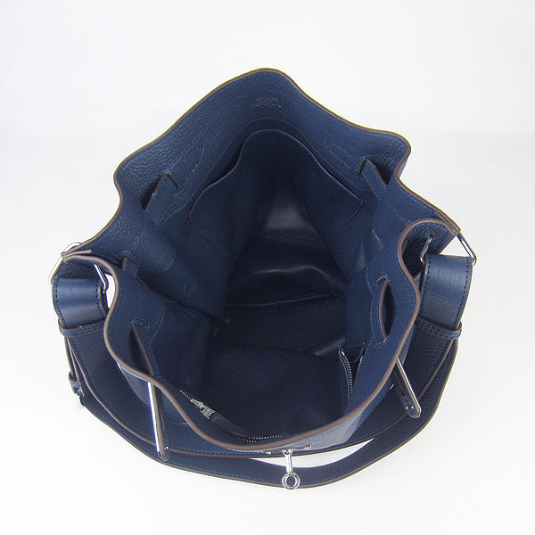 Hermes Nappa Leather Shoulder Bag H2804 dark blue Silver