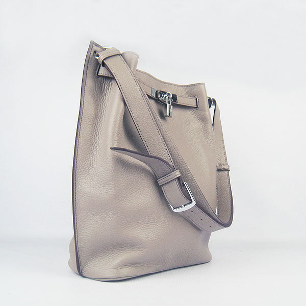Hermes Nappa Leather Shoulder Bag H2804 grey Silver