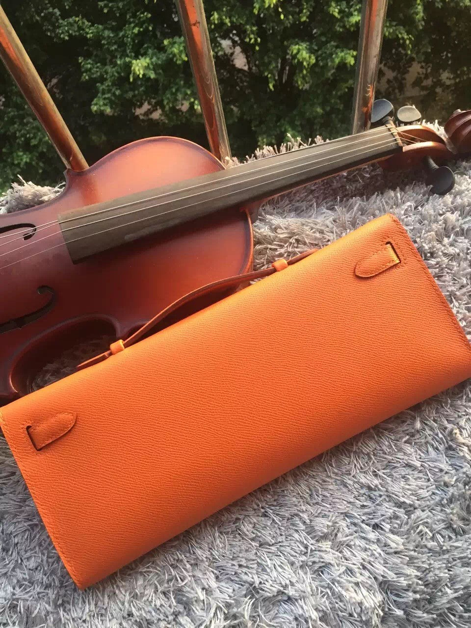 Hermes Orange Handcrafted Kelly Cut Clutch