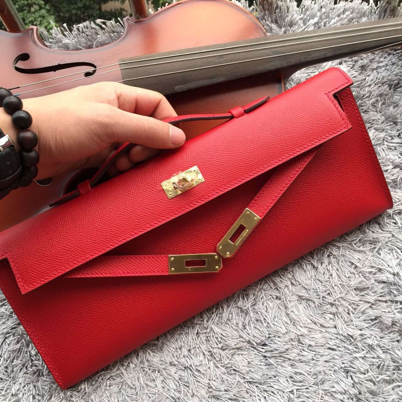 • Load image into Gallery viewer, Hermes Red Handcrafted Kelly Cut Clutch