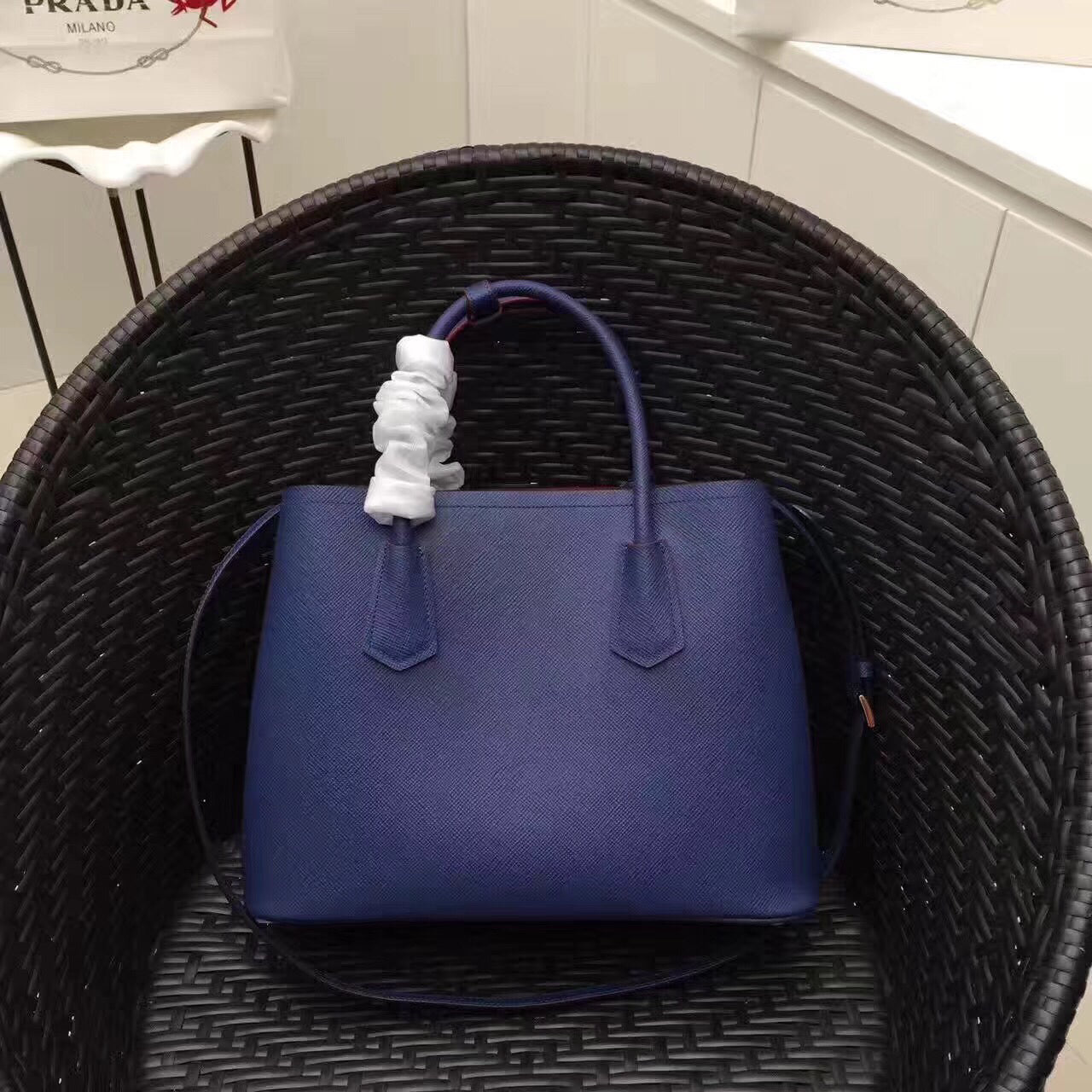 • Load image into Gallery viewer, Prada Blue Saffiano Double Medium Bag