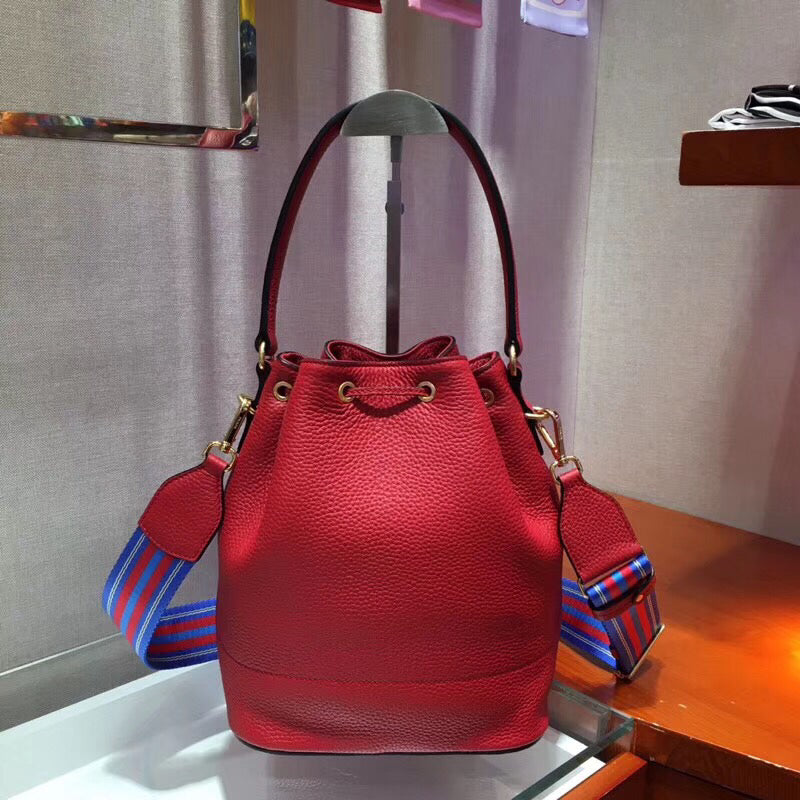 - Leather drawstring closure on the top
