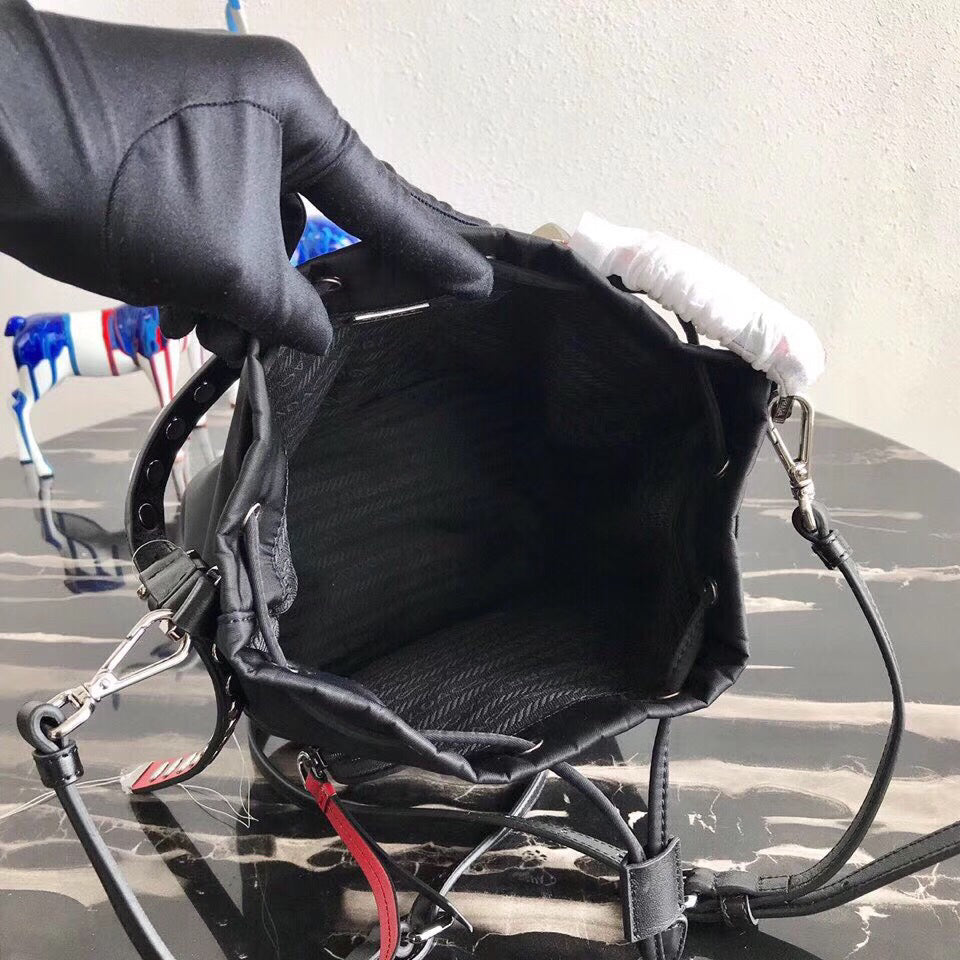 Prada Bucket Shoulder Bag In Black Nylon 1BH038