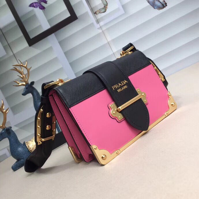 Prada Cahier Shoulder Bag In Pink/Black Leather