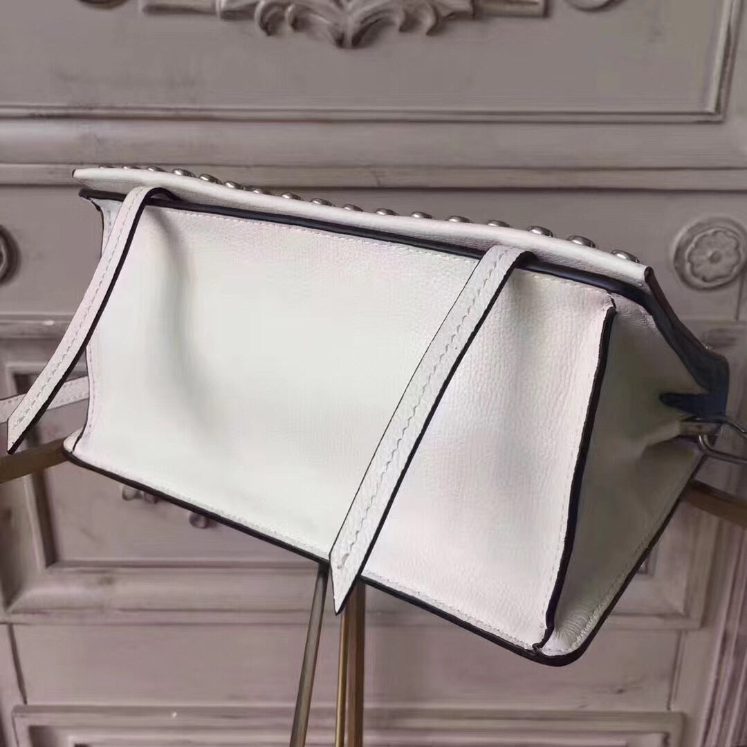 Prada Etiquette Bag In White Calfskin With Metal Stud Trim