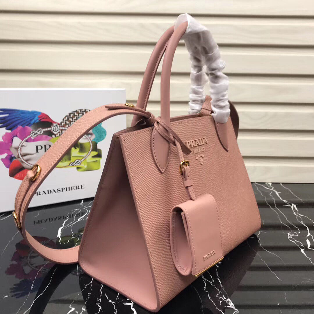 Prada Large Monochrome Bag In Nude Saffiano Leather