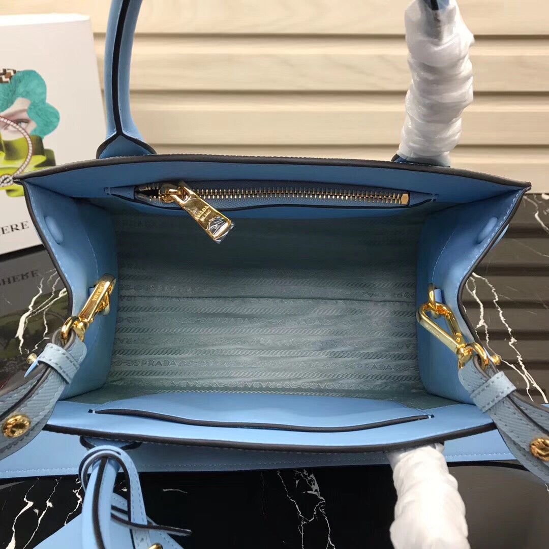 Prada Monochrome Bag In Pale Blue Saffiano Leather