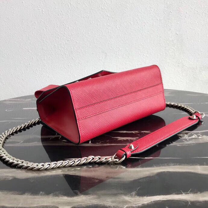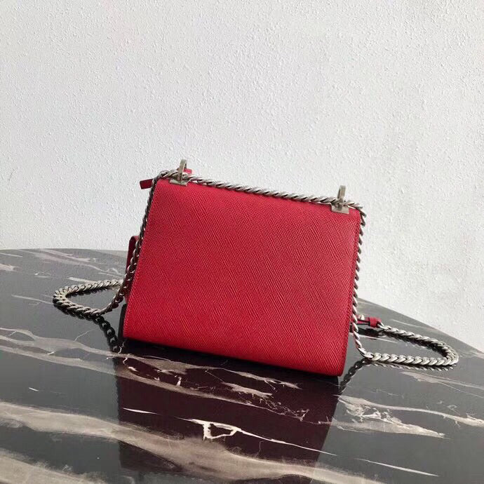 Prada Red Monochrome Flap Bag With Metal Appliques