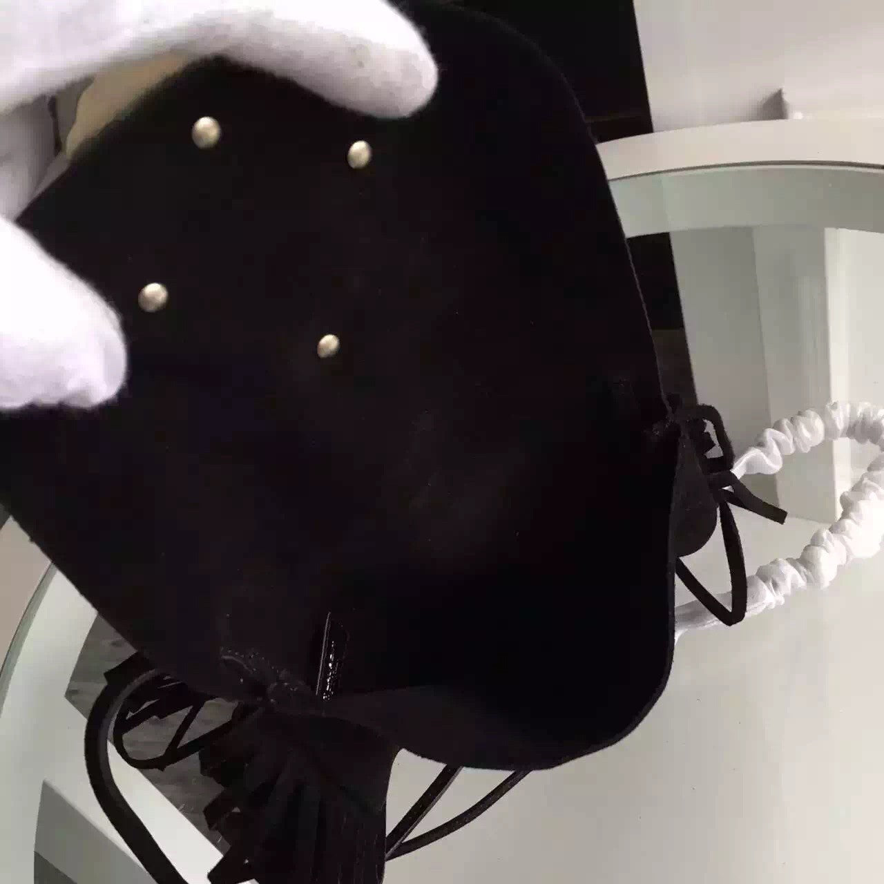 Yves Saint Laurent Anita Fringed Flat Bag In Black Suede Leather